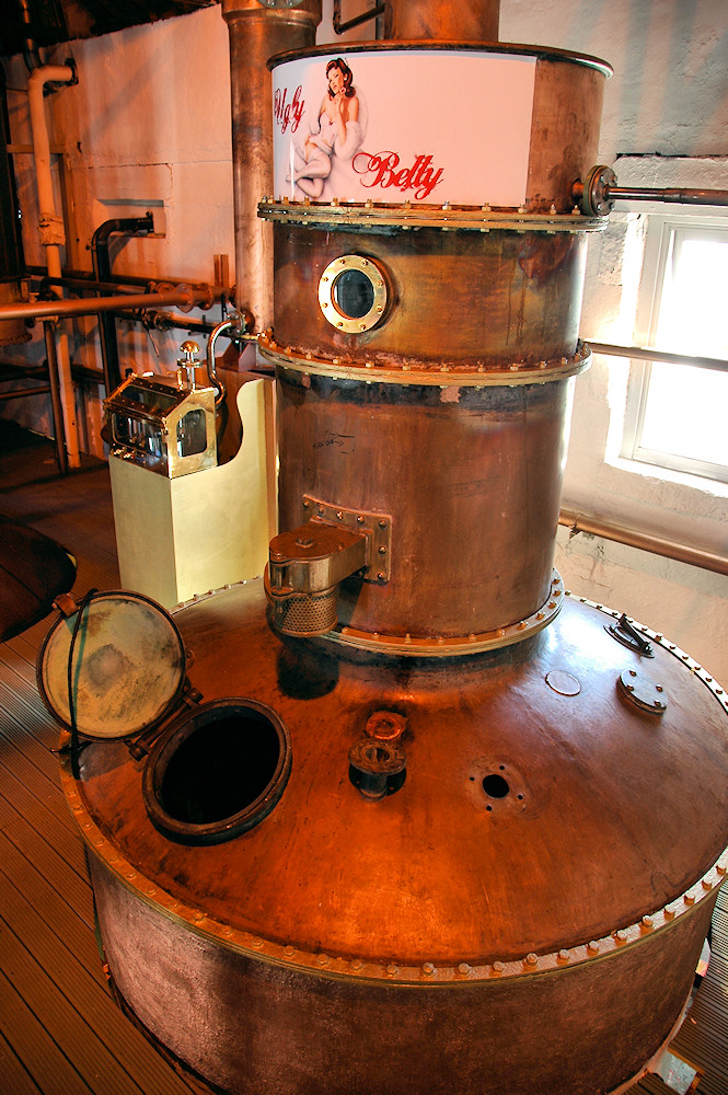 ブルイックラディ蒸留所のジム・マッキューワン氏が進めていたポート・シャーロット蒸留所の創業計画が頓挫したという。その理由だが、この新蒸留所のウリにするはずだったローモンドスティルが原因らしい。このスティルには、その異様な外観から「醜いベティ (Ugly Betty)」なんていうニックネームがつけられ、トップの部分にはイラスト付きのプレートまで取りつけられている。