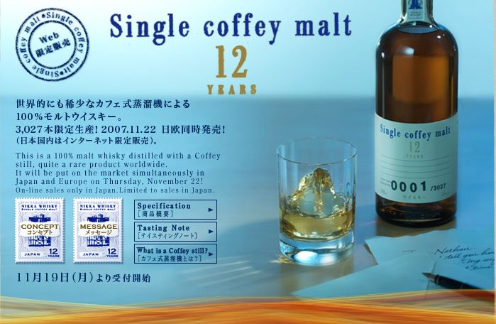 今月の22日に、ニッカから興味深いウイスキーがリリースされる。その名も「シングル・カフェ・モルト12年」。次号のスコッチ通信(スコッチ文化研究所の定期刊行物)のテイスティングで取り上げられることになり、テイスターとして先日ひと足お先にテイスティングさせていただいた。
